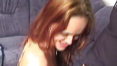 "A slim German lady gets her face covered with cum after some amazing cock riding"