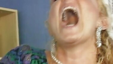 "A wild granny from Germany gets her face sprayed with cum"