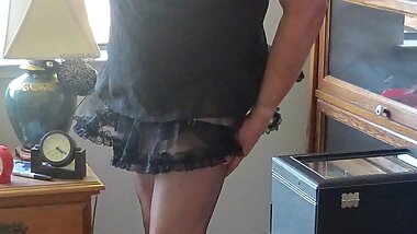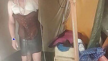 "Hot tv crossdresser Nottstvslut in full length bronze metallic satin"