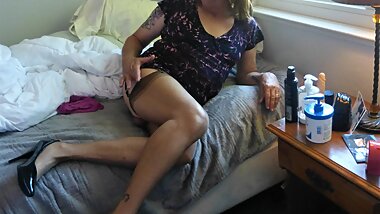 "Lady Alice compilation 03 big dildo and deepthroat and glamour fetish session. lingerie, pantyhose, high heels, lipstick"