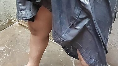"Anita yadav bathing outside with dance"