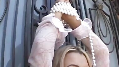 Redhead Slips off White Retro Lingerie Masturbates in her Vintage Nylons
