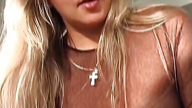 Stockings clad blonde whipped while teasing bound sub