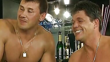 "Three outstanding slaves from Germany pleasing a wild dude"
