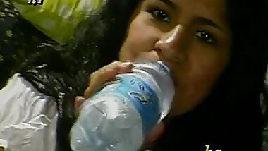 "Sexy brunette lady from Germany gets pissed and fucked by a thick rod"