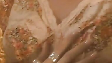Hot MILF Holly Kiss Strips off Vintage Lingerie Heels Wanks off in Nylons