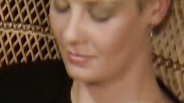 "A horny blonde woman from Germany gets screwed by two hard rods"