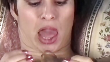 "A wild granny from Germany gets her face sprayed with cum"