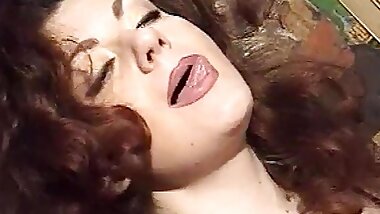 Brunette MILF Strips off Retro Lingerie Masturbates in Nude Nylons Garters