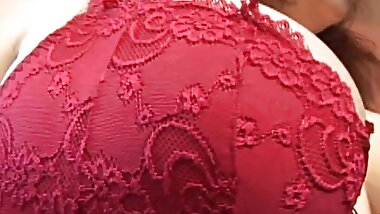 "A pretty lady in a red dress sucks and fucks a big dildo. Footjob, titlob, blowjob. Depraved shy slut. Naked cunt withou"