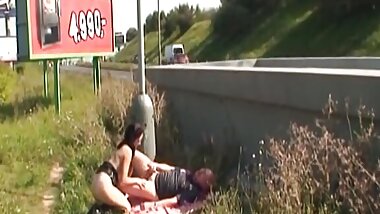 "Beautiful dark haired babe from Germany gets fucked near the road"