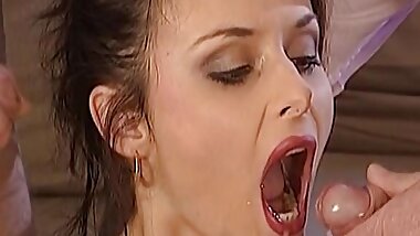 "Dark haired German lady gets her holes punished by two hard cocks"