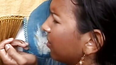 "Oh no! Lots of cum in my stockings. I need a cum cleaner slave"