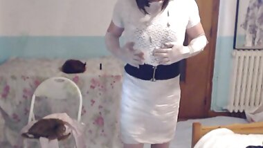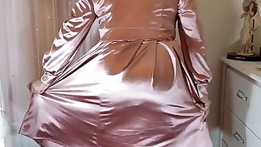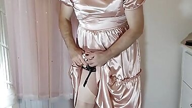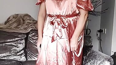 "Uk sissy crossdresser in full length vintage satin"