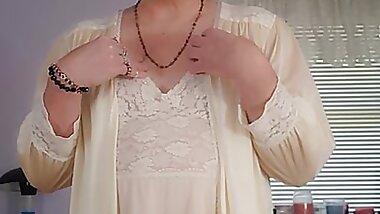 "Sexy crossdresser in full length vintage satin"