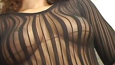 "Horny MILF in stockings and busty teen pleasing a loaded cock"
