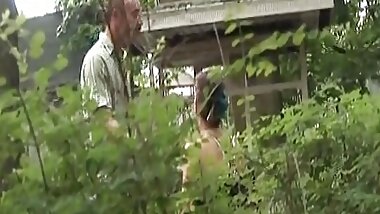 "Natural titted German lady gets her muff destroyed in the middle of the woods"